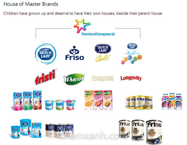 - Sử dụng duy nhất một thương hiệu mẹ áp dụng vào nhiều sản phẩm/dịch vụ